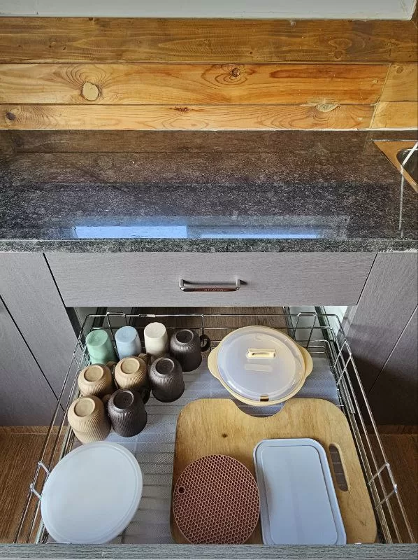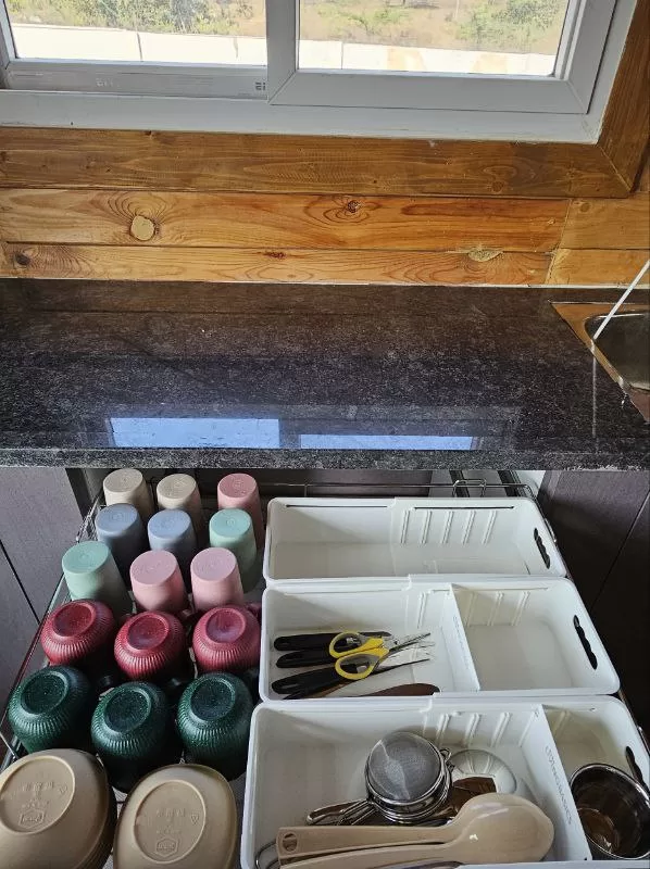 Kitchen / Water glass, tea/coffee mugs, and cutlery